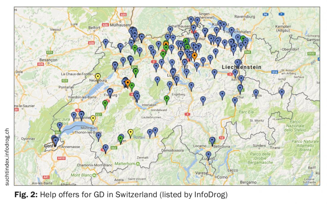 Understanding psychological features of GD, diagnosing and exploring avenues, that could enhance help seeking, are the basis of treatment response that could be offered to subjects with such disorder and to their relatives. In Switzerland specialized facilities have developed over the last decade offering help, counseling and treatment for people affected directly and indirectly by this complex mental disorder [3].
