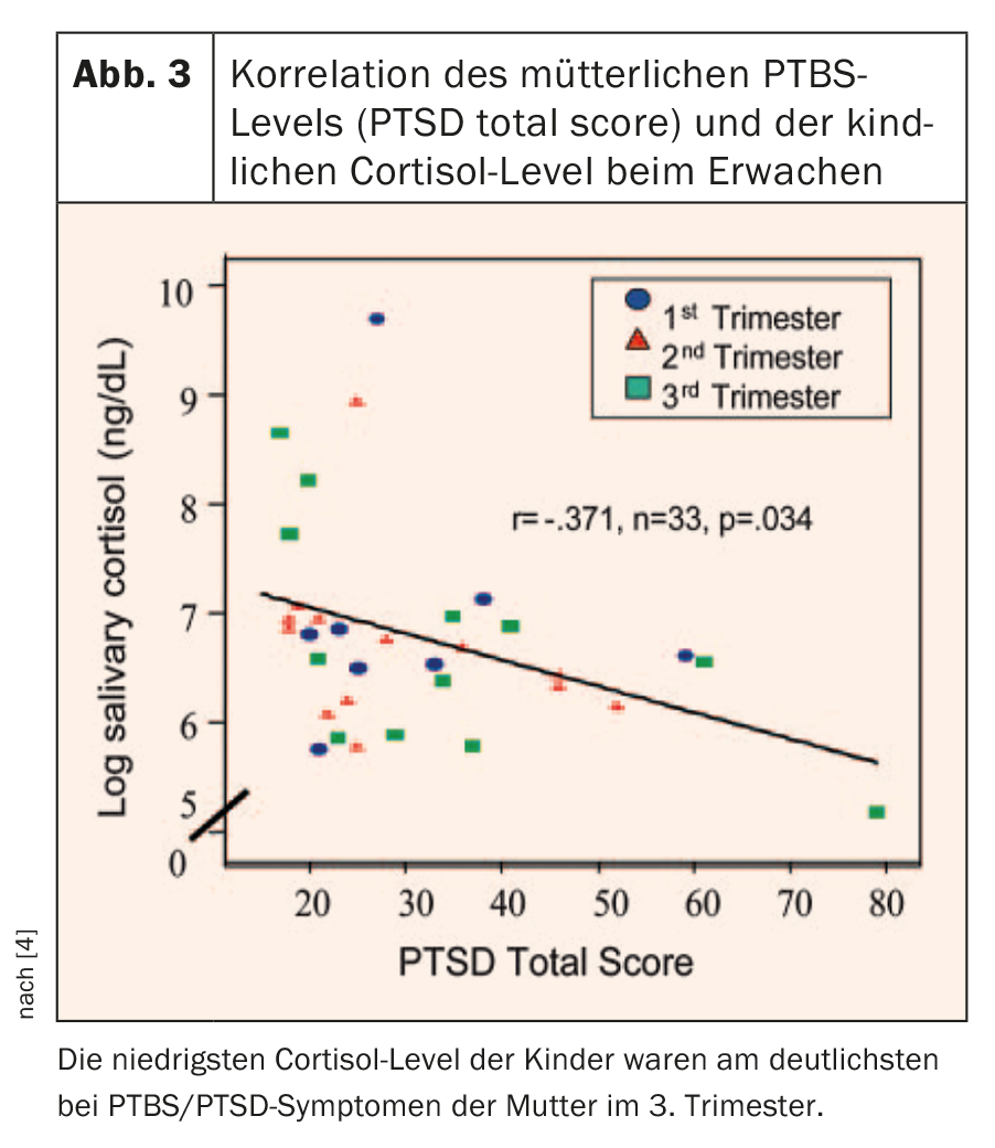Lo emocionante e impactante de los estudios es que no sólo las víctimas mostraron estos cambios, sino también su descendencia. Yehuda pudo demostrar que los padres traumatizados con síntomas de TEPT daban a luz a niños con síntomas similares; eran portadores de síntomas clínicos y psicológicos de traumas que ellos mismos no habían experimentado (Fig. 2, Fig. 3) [2].