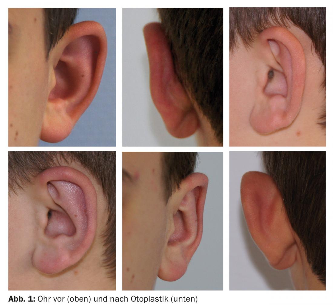 Existe un pabellón auricular saliente cuando el hélix sobresale más de 1,5 cm del plano lateral de la cabeza visto de frente. El ángulo entre la concha auricular y la escápula debe ser de unos 90°, el ángulo entre la aurícula y el plano mastoideo de unos 30°. Las causas del exceso de esta masa suelen ser un pliegue antelar insuficiente o inexistente y un cavum conchae excesivamente grande (Fig. 1) [6].