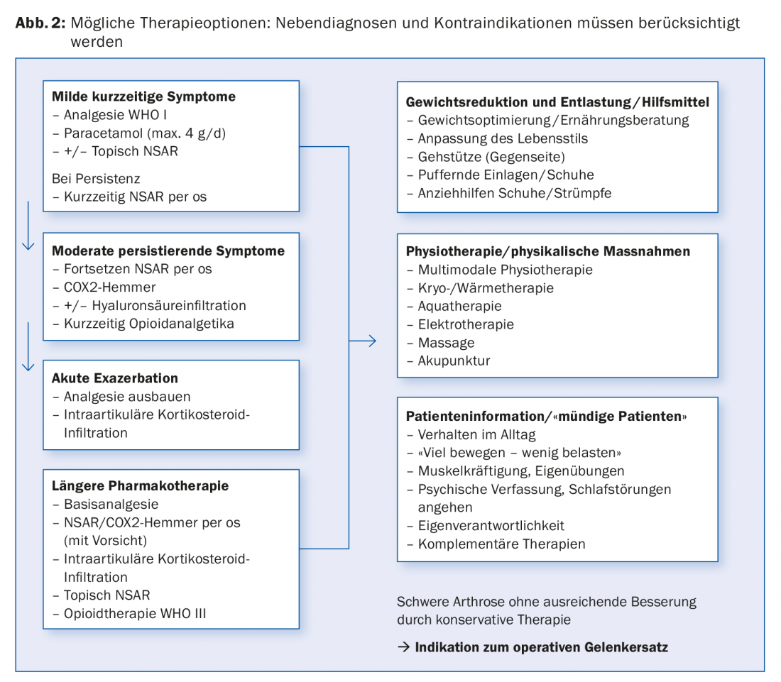 Un traitement conservateur d’au moins trois à six mois devrait être obligatoire après le début des symptômes. Indépendamment de l’âge, l’indication d’une prothèse articulaire doit être discutée en cas d’arthrose avancée et de douleurs arthrosiques coxogéniques dont la cause est établie et qui réduisent la qualité de vie malgré un traitement conservateur multimodal (fig. 3).