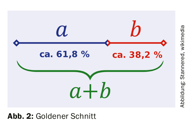 Les propriétés avantageuses et la meilleure fonction possible sont donc intrinsèquement liées. La beauté est donc, malgré tout, tout à fait objectivable et trouve son expression mathématique dans ce que l’on appelle le “nombre d’or” (fig. 2).