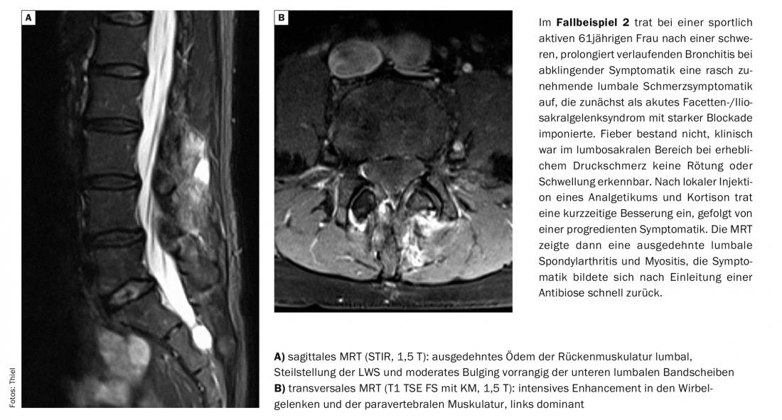 Le miopatie infiammatorie possono essere idiopatiche o indotte da agenti patogeni. Si trova anche in concomitanza di collagenosi, granulomatosi e sindromi maligne e paraneoplastiche. La diagnostica per immagini viene effettuata principalmente con la risonanza magnetica, così come gli esami di follow-up durante e dopo la terapia.