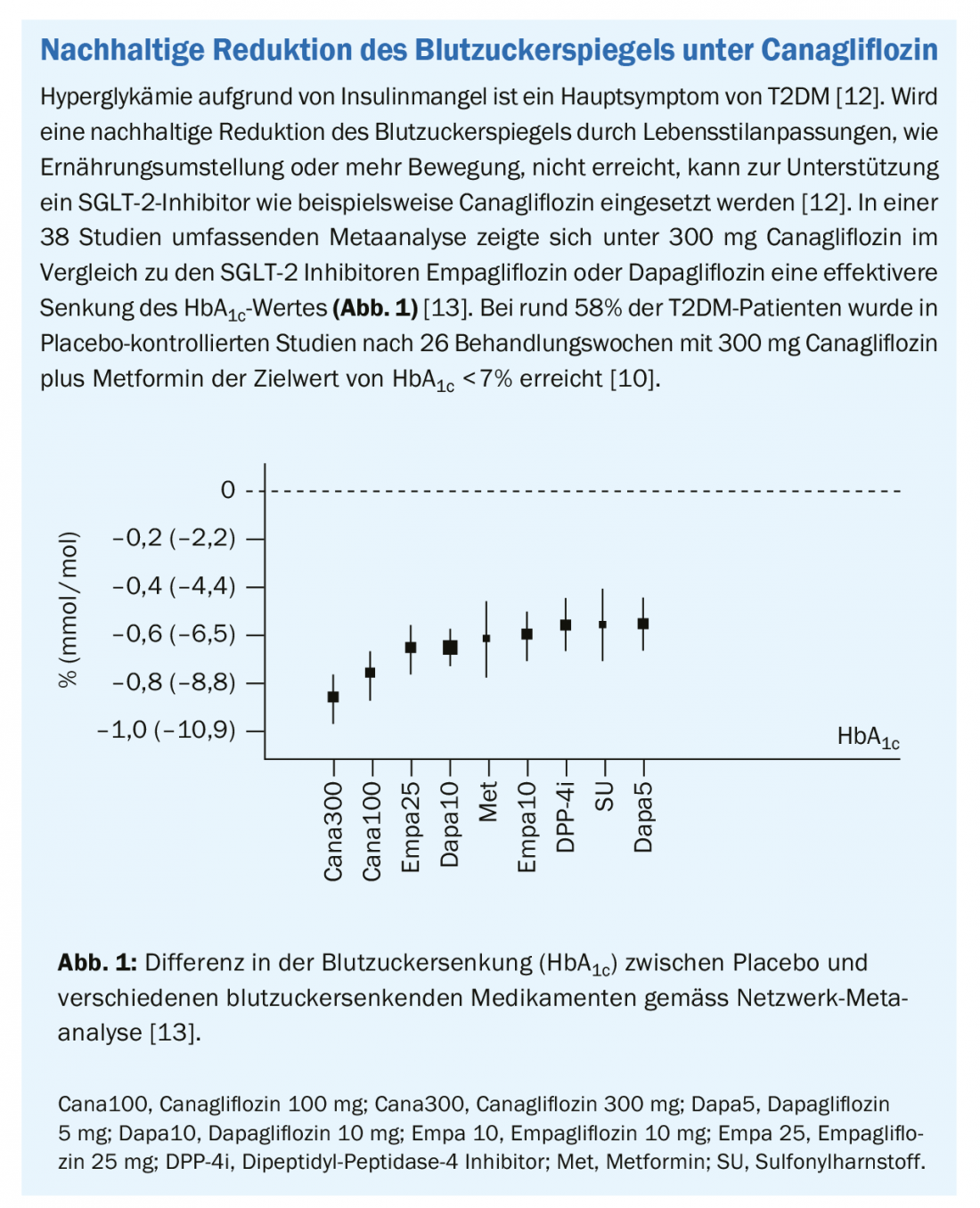 Canagliflozin è stato approvato dal 2014 come terapia aggiuntiva alla dieta e all’esercizio fisico per il trattamento di pazienti adulti con T2DM non adeguatamente controllato o in combinazione con altri farmaci che abbassano la glicemia [10]. Sulla base dei dati del programma di sperimentazione CANVAS, che ha dimostrato l’effetto cardioprotettivo di canagliflozin nei pazienti con T2DM e alto rischio cardiovascolare, l’indicazione di canagliflozin (Invokana®) e della combinazione fissa di canagliflozin e metformina (Vokanamet®) è stata recentemente ampliata per la prevenzione degli eventi cardiovascolari negli adulti con T2DM e malattia cardiovascolare già manifesta [10,11].