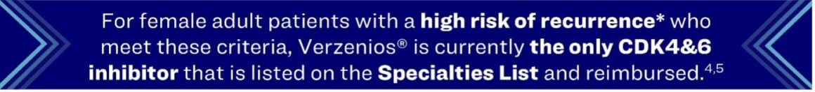 Verzenios® (abemaciclib) – Now listed on the Specialties List (SL) for reimbursement for HR+, HER2‑ early breast cancer with a high risk of recurrence*,5