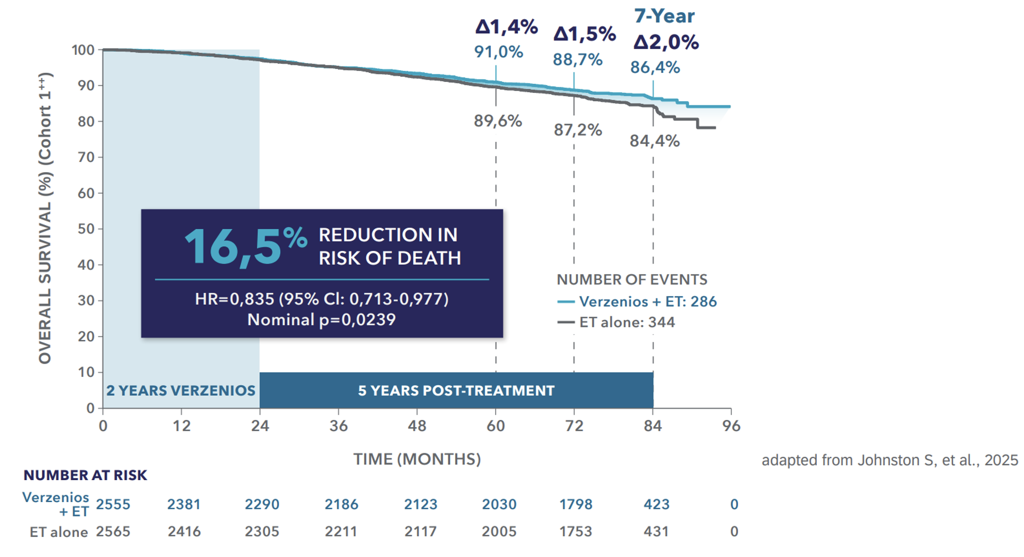 1. Johnston S, et al. Overall Survival with Abemaciclib in Early Breast Cancer, Annals of Oncology (2025), doi: https://doi.org/10.1016/j.annonc.2025.10.005. 2. Hortobagyi GN et al. Ann Oncol. 2025;36(2):149-57.