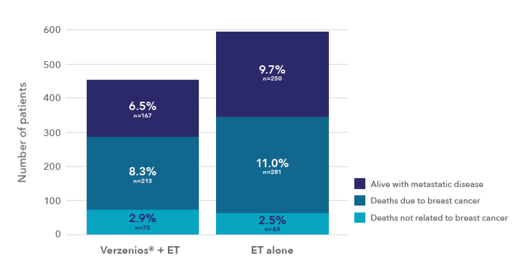 Breakthrough overall survival data: Verzenios® in combination with AI or tamoxifen increases survival†,1