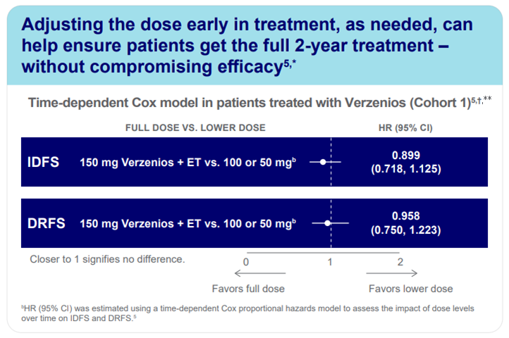 A significant proportion of patients required dose reductions during the 2-year treatment period. Importantly, efficacy was maintained even in those who received reduced doses, highlighting the flexibility of the regimen and its tolerability in real-world settings (Cohort1**).5