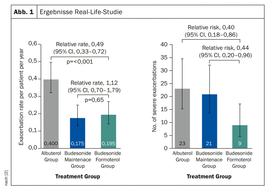 O resultado mostrou que o uso contínuo e necessário de cortisona inalada era absolutamente igual nos seus efeitos quando se olha apenas para o que, em última análise, é relavante para os pacientes, nomeadamente o efeito em exacerbações graves. Claramente em inferioridade numérica foi apenas SABA.