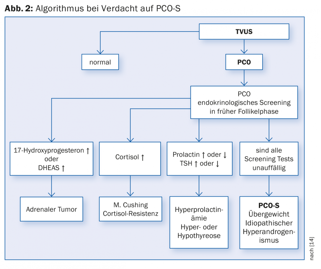 Para além dos sintomas mais comuns de esterilidade e oligo- resp. Amenorreia, faz parte da confirmação do diagnóstico (ver também Fig. 2):